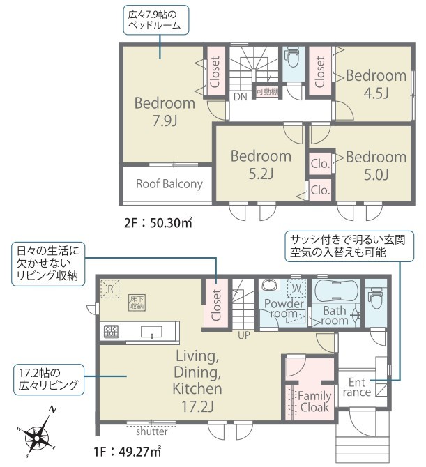 | 間取 | 4LDK (LDK17.2帖、洋室7.9帖、洋室5.2帖、洋室5帖、洋室4.5帖) | ||