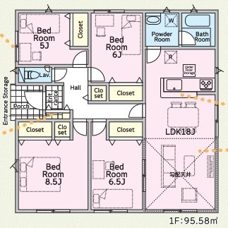 | 間取 | 4LDK (LDK18帖、洋室8.5帖、洋室6.5帖、洋室6帖、洋室5帖) | ||