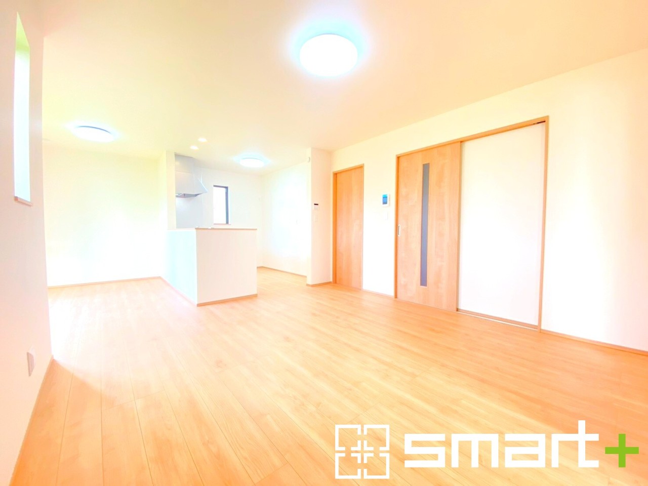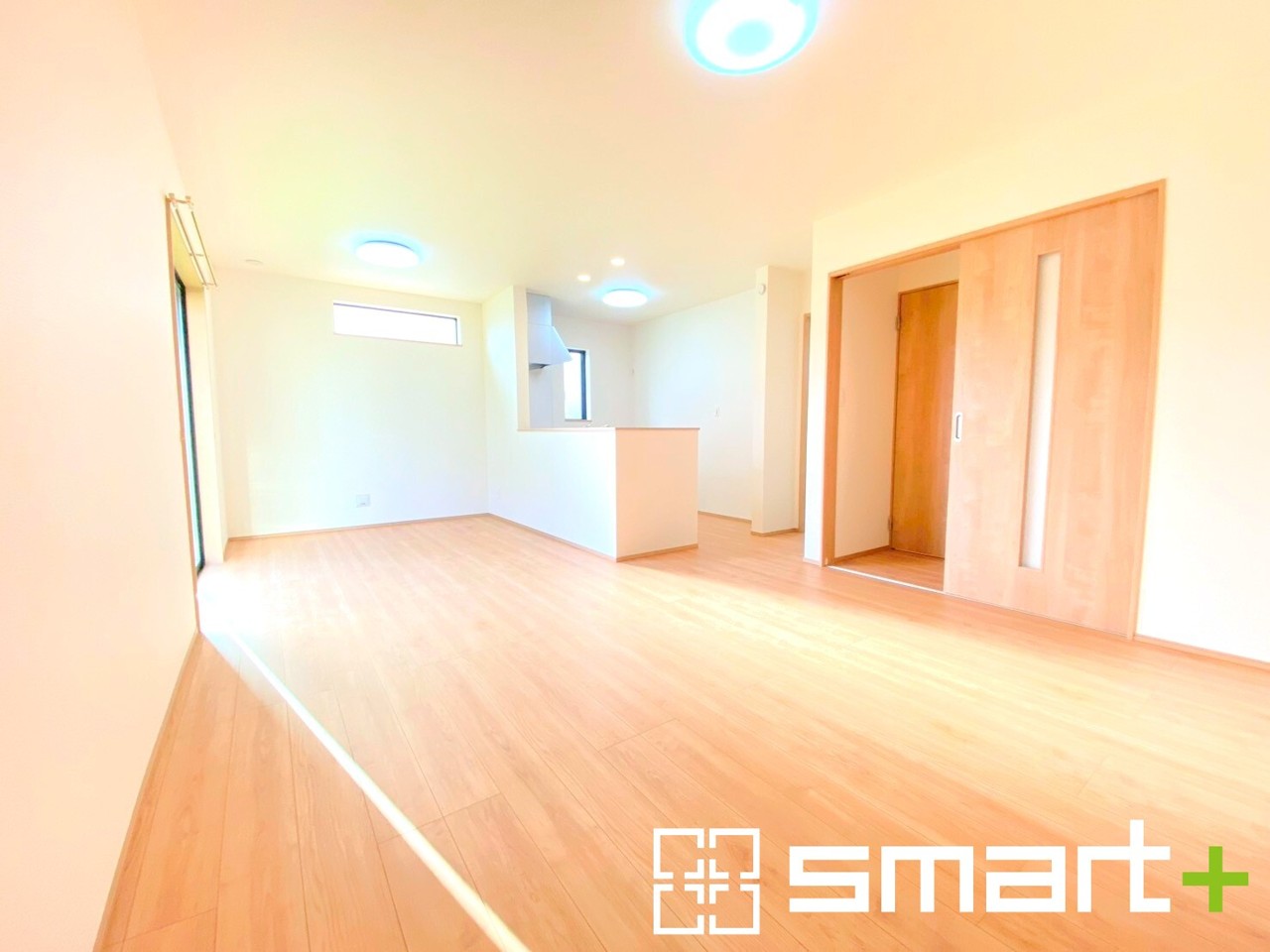 B号棟 ~穏やかな陽の入るLDK~ ・大きな窓のあるLDKは陽当りも良好で明るい空間となっております。 ・ご家族団らんなど過ごす時間の多いLDKが明るいのは嬉しいポイントですね。