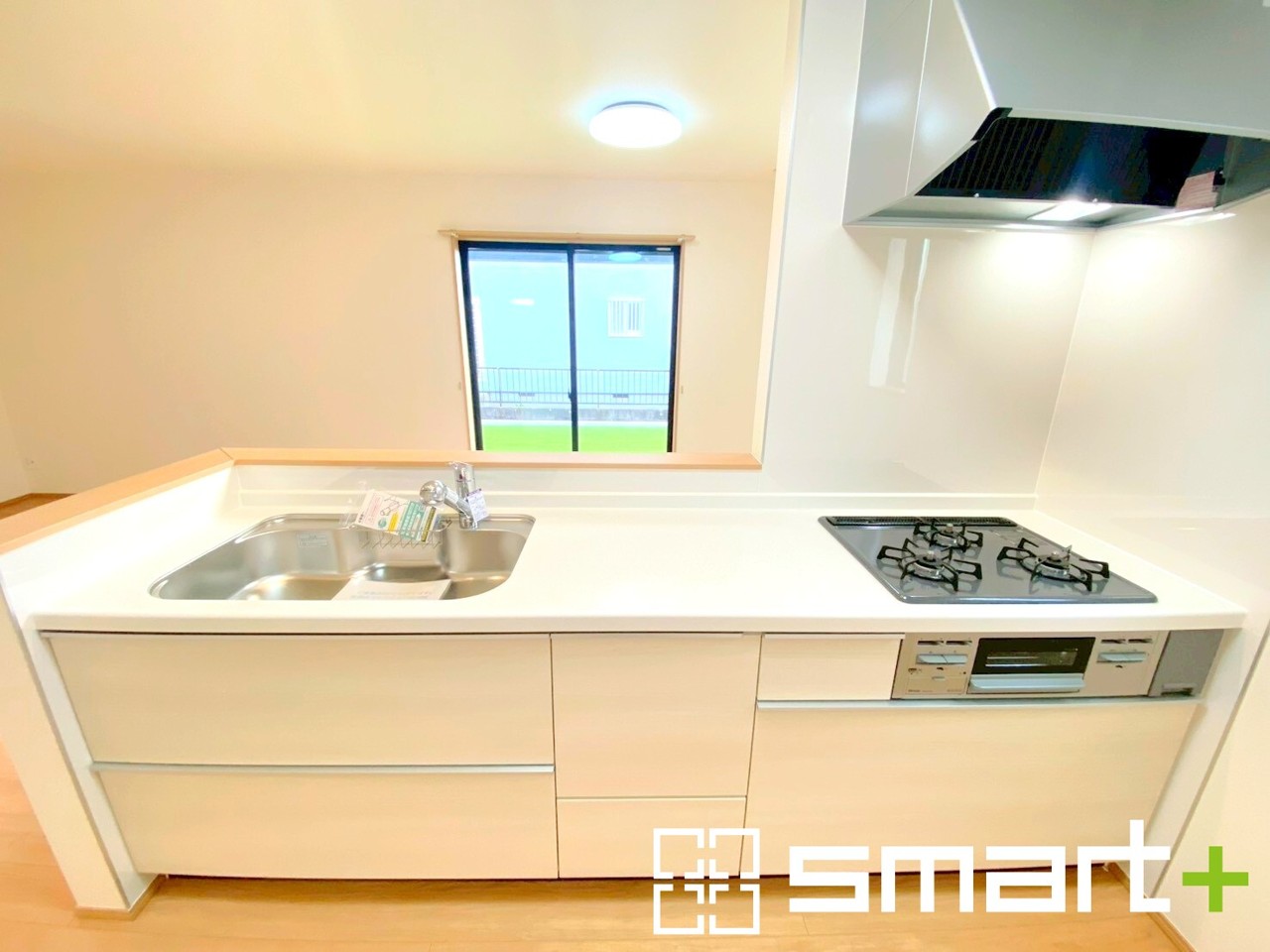 A号棟 ~人気のカウンターキッチン~ ・キッチンには余計な柱が無いので、リビングが見渡せ開放感のある造りとなっております。 ・蛇口には浄水器が内蔵されるなど機能面でも優れたキッチンです。