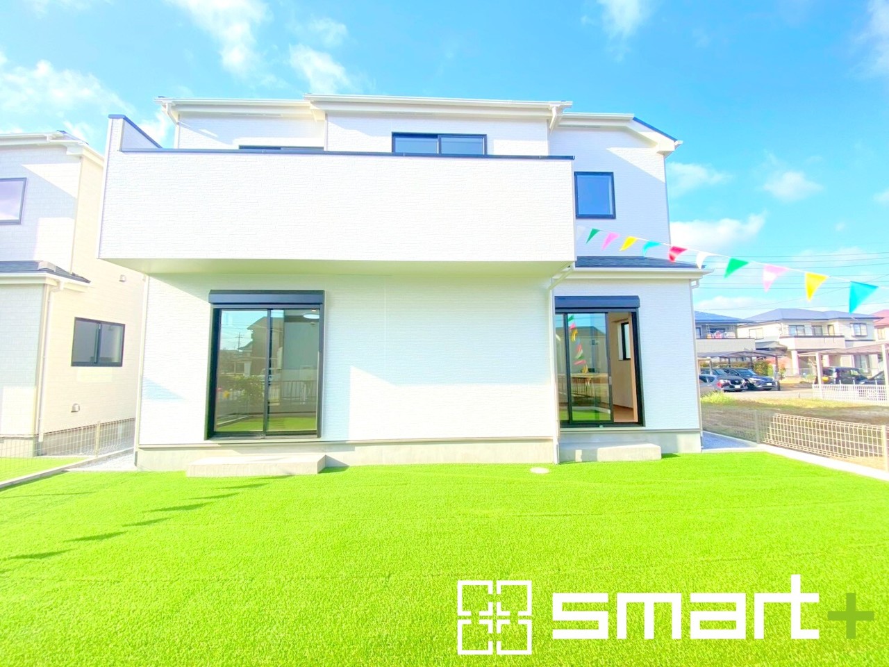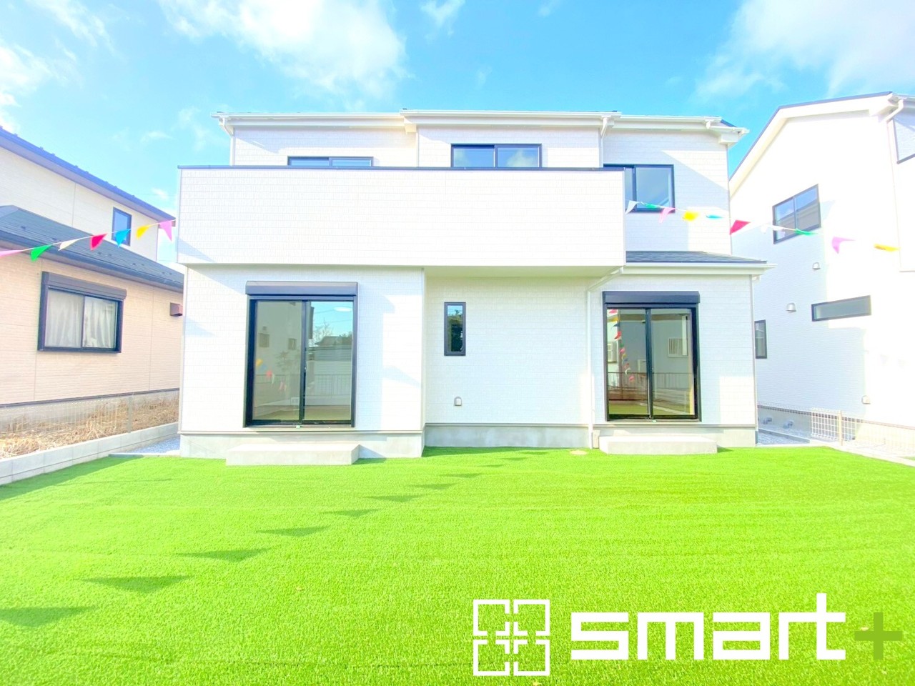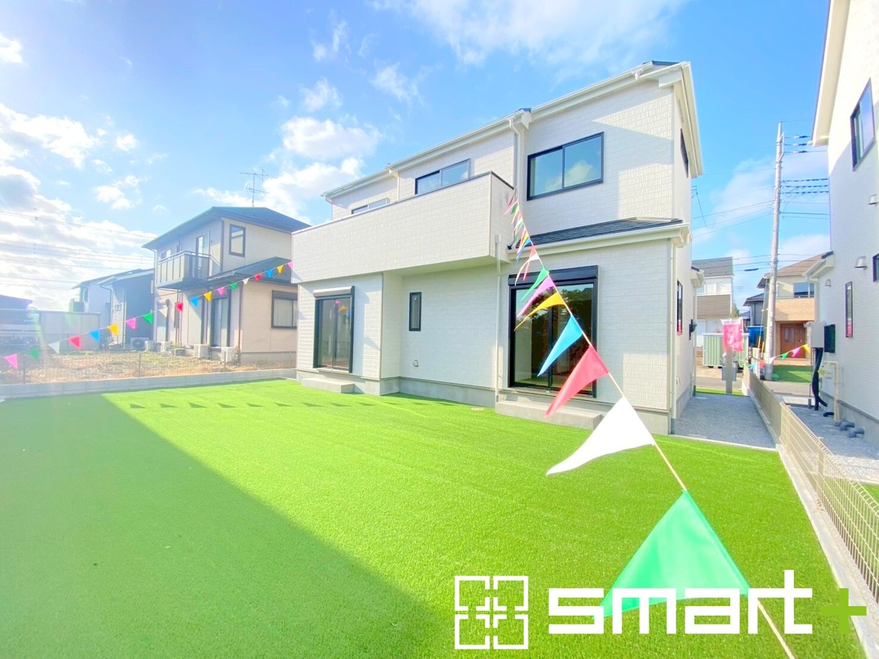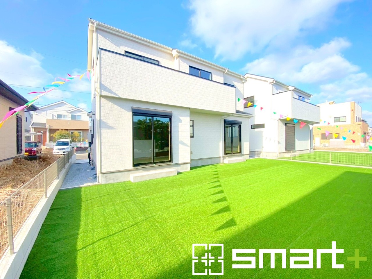 ~人工芝のある綺麗なお庭~ ・標準で人工芝を敷設しておりますので、見た目にも綺麗なお庭となっております。 ・人工芝の場合雑草が生えてこず、管理が楽なのも嬉しいポイントです。 (A号棟)
