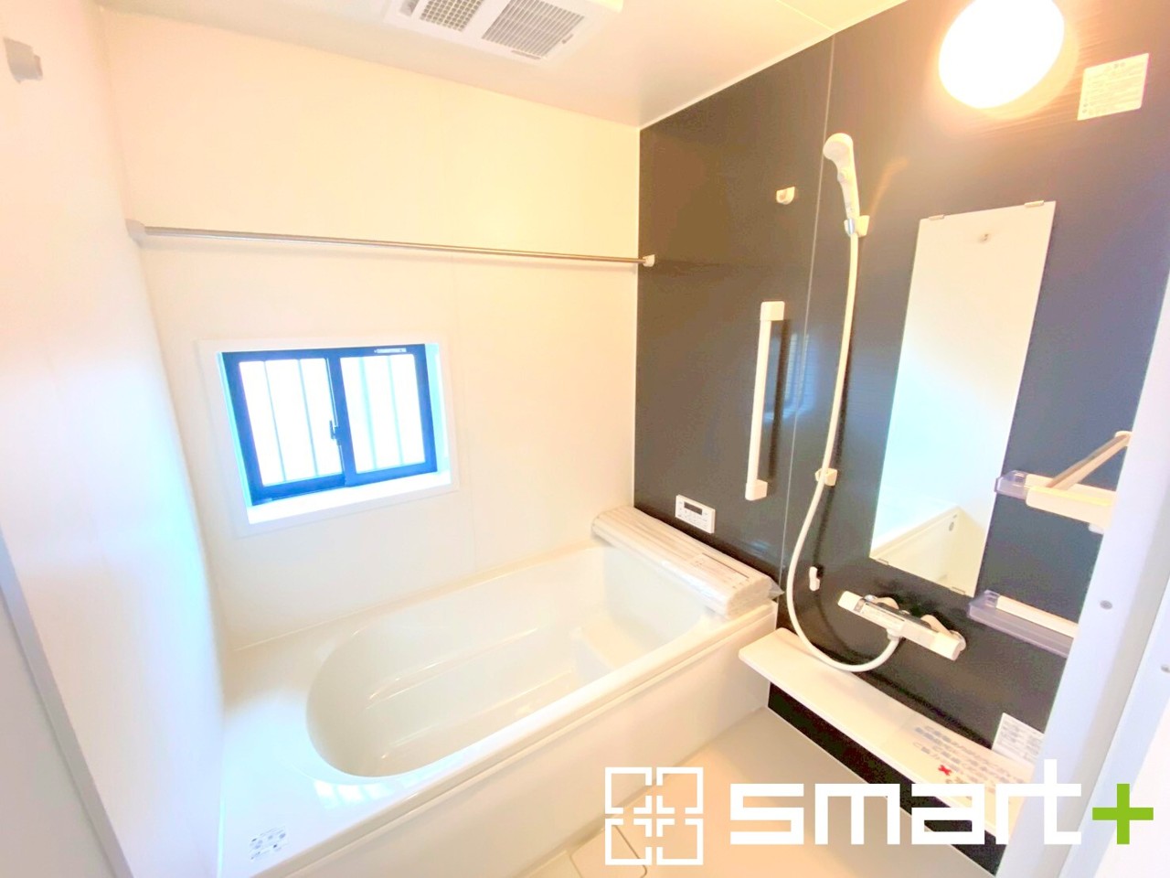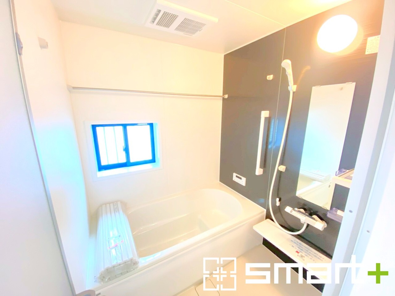 A号棟 ~浴室乾燥機付きの浴室~ ・浴室には乾燥機が付いているので雨の日でも洗濯物を干すことが可能です。 ・水はけの良い床材など機能面も充実。マイクロバルなどオプションもご相談くださいませ。