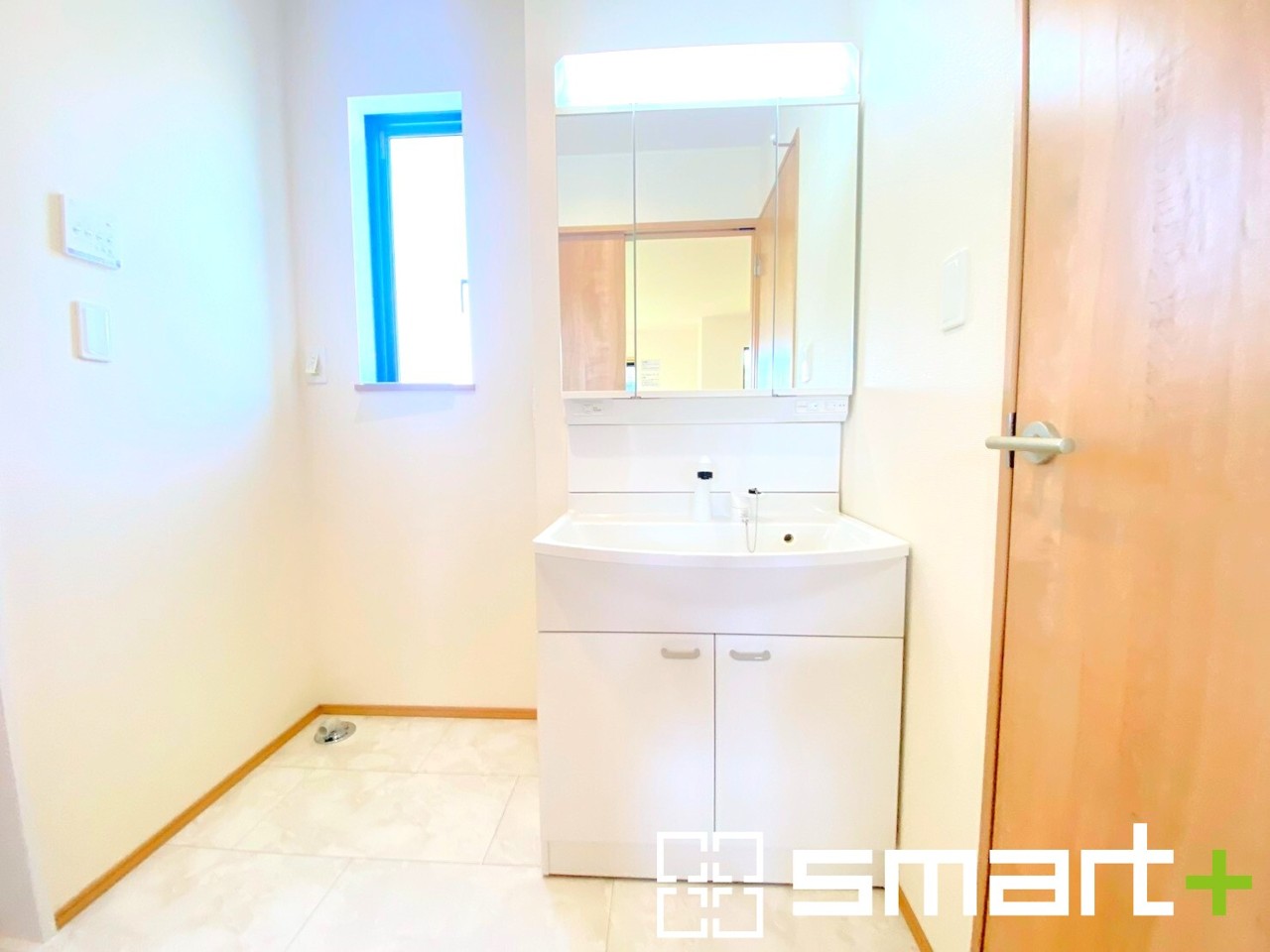 ~人気の三面鏡を採用~ ・洗面台は三面鏡仕様なので鏡の角度を変える事で頭の後ろの方までご確認可能です。 ・鏡の裏が収納になっておりますので、洗面台周りもスッキリと片付きます。 (A号棟)
