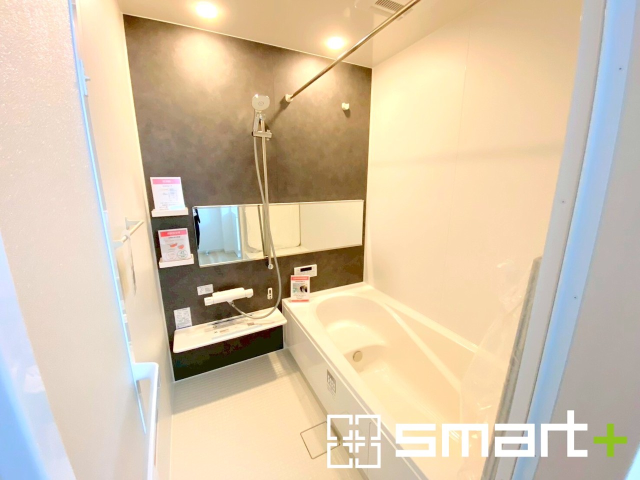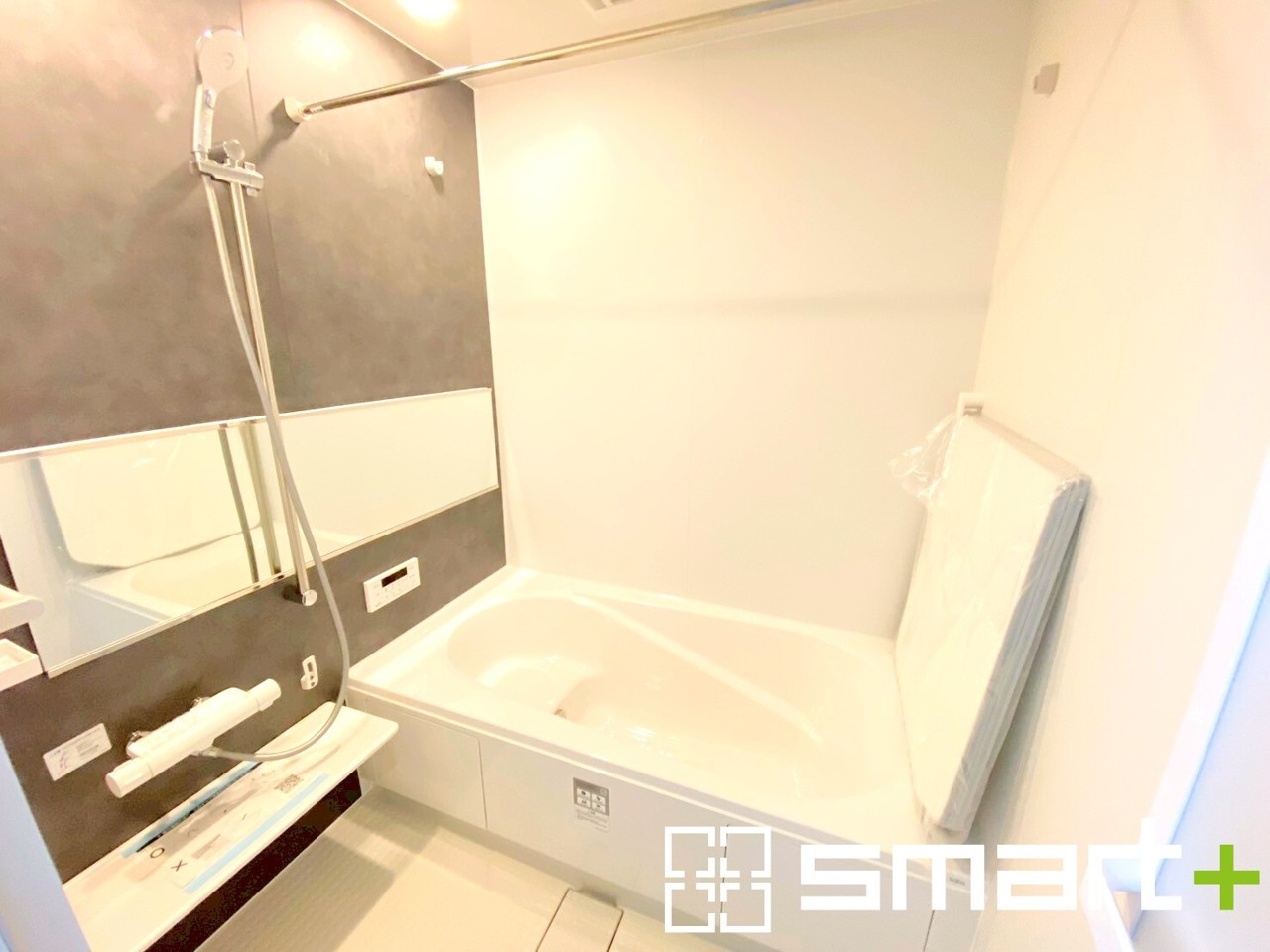 1号棟 ~浴室乾燥機付きの浴室~ ・浴室には乾燥機が付いているので雨の日でも洗濯物を干すことが可能です。 ・水はけの良い床材など機能面も充実。マイクロバルなどオプションもご相談くださいませ。