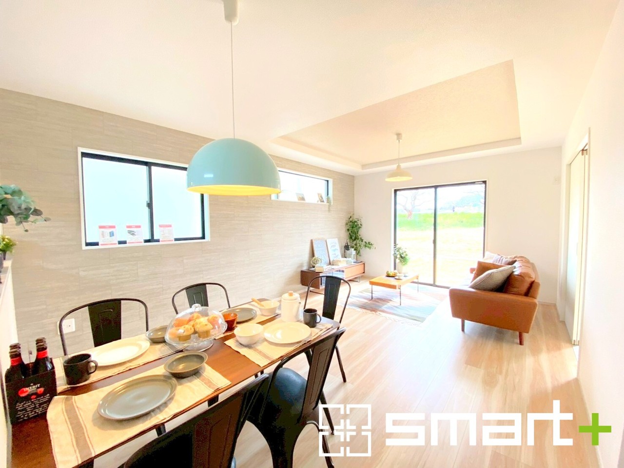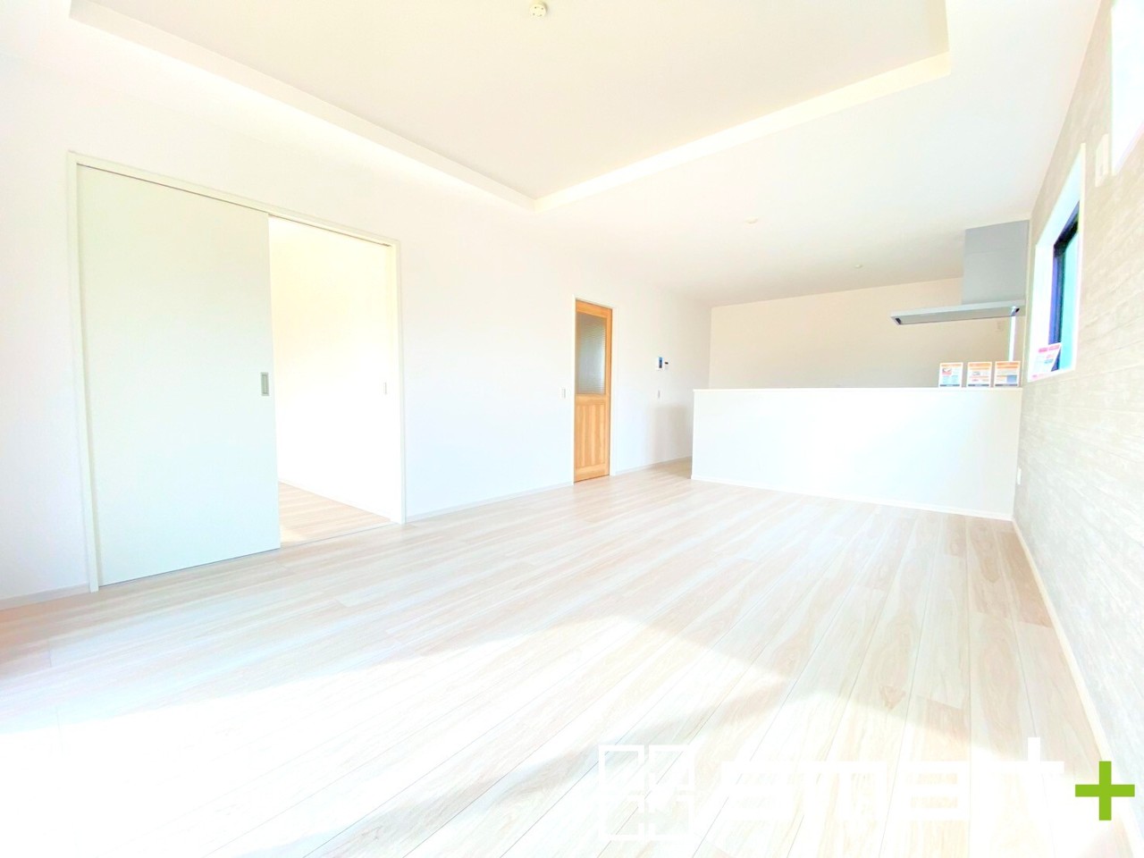 1号棟 ~穏やかな陽の入るLDK~ ・大きな窓のあるLDKは陽当りも良好で明るい空間となっております。 ・ご家族団らんなど過ごす時間の多いLDKが明るいのは嬉しいポイントですね。