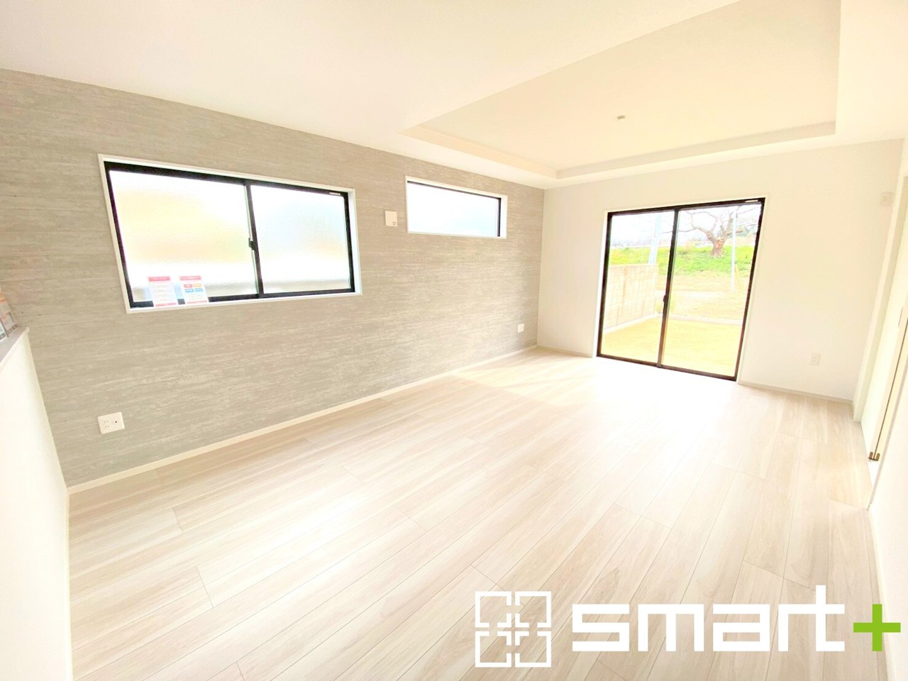 2号棟 ~日当り良好のLDK~ ・たくさんの窓からたっぷりの陽光が差し込む明るいリビングで寛ぎのひと時を。 ・柔らかみのあるナチュラルカラーで、家具やカーテンの色も選びやすいですね。