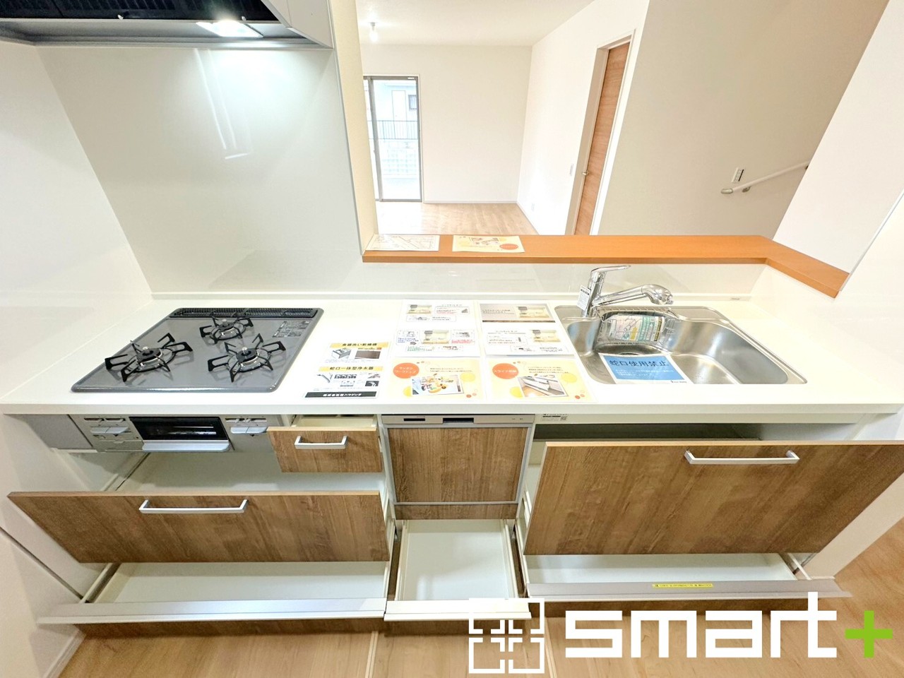 ~人気のカウンターキッチン~ ・キッチンには余計な柱が無いので、リビングが見渡せ開放感のある造りとなっております。 ・蛇口には浄水器が内蔵されるなど機能面でも優れたキッチンです。