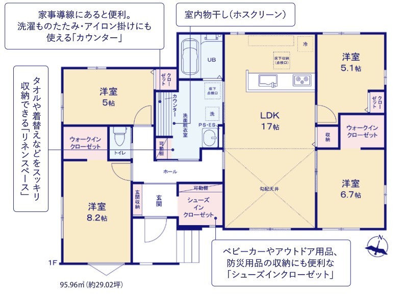 ~収納豊富なプランを採用~ ・ウォークインクローゼット、シューズインクロークなど収納豊富なプランを採用。 ・今のお住まいと収納力をぜひ比較してみてください。