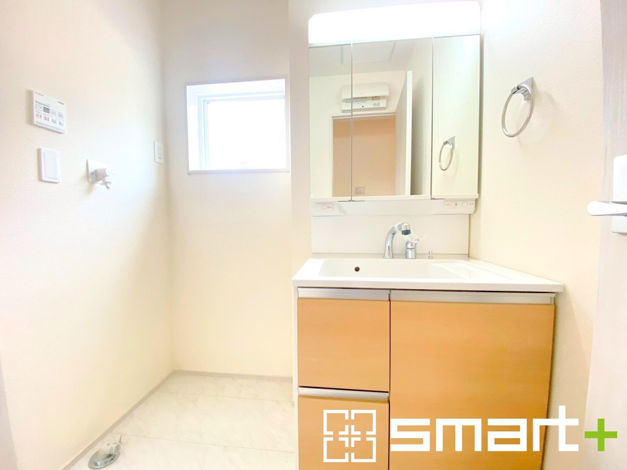 ~人気の三面鏡を採用~ ・洗面台は三面鏡仕様なので鏡の角度を変える事で頭の後ろの方までご確認可能です。 ・鏡の裏が収納になっておりますので、洗面台周りもスッキリと片付きます。