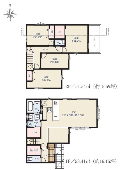 | 間取 | 4LDK (LDK20.8帖、洋室8.2帖、洋室6.1帖、洋室5.2帖、洋室4.5帖) | ||