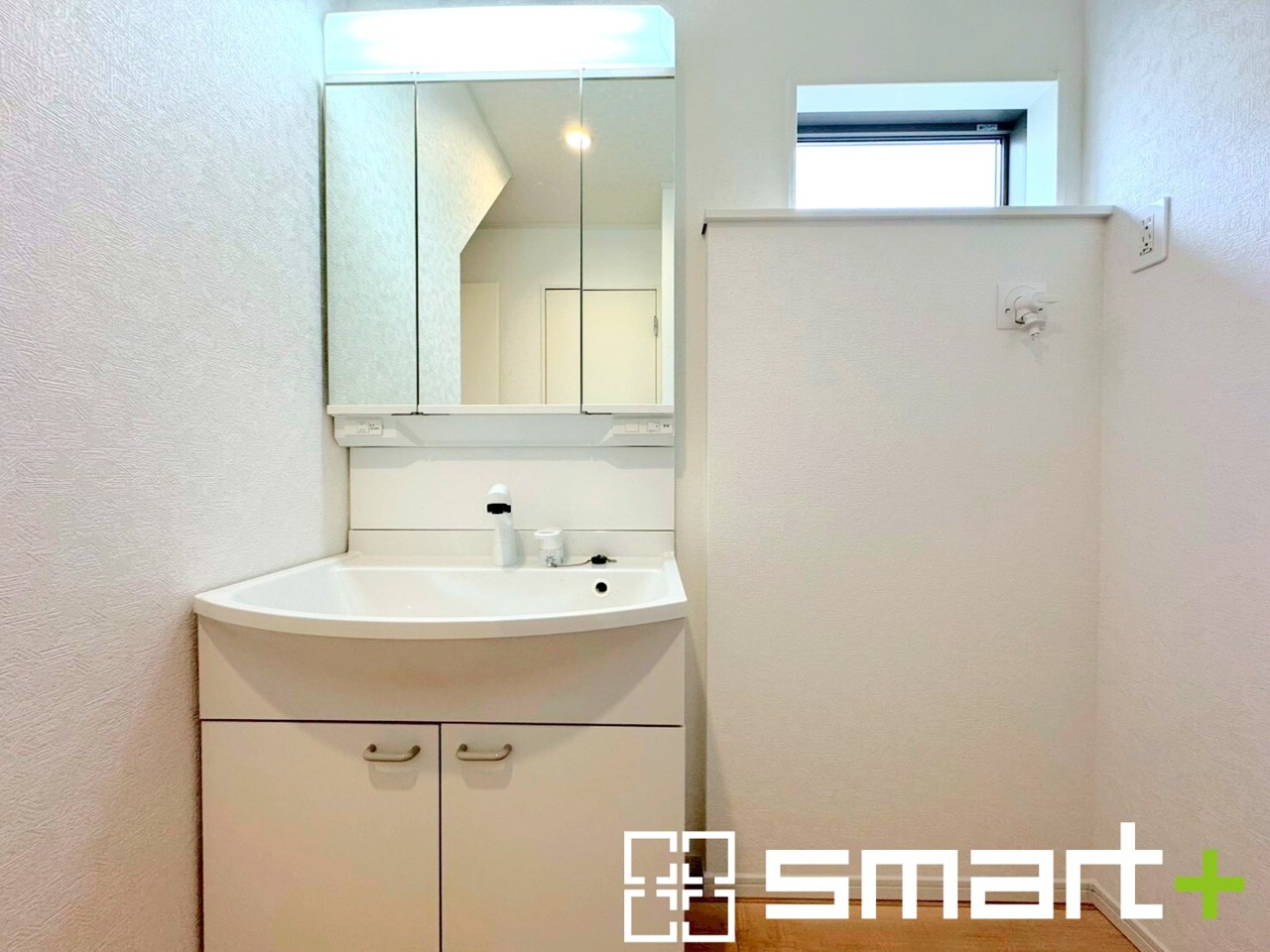 ~明るい洗面スペース~ ・窓から明るい陽が入り、気持ちよく朝の支度ができますね。 ・使い勝手の良い三面鏡タイプのシャワー付き洗面化粧台。鏡の裏に収納があるので洗面台周りもスッキリ。