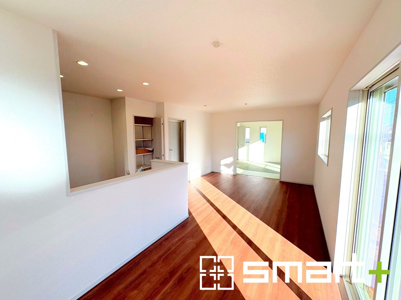1号棟 ~穏やかな陽の入るLDK~ ・大きな窓のあるLDKは陽当りも良好で明るい空間となっております。 ・ご家族団らんなど過ごす時間の多いLDKが明るいのは嬉しいポイントですね。