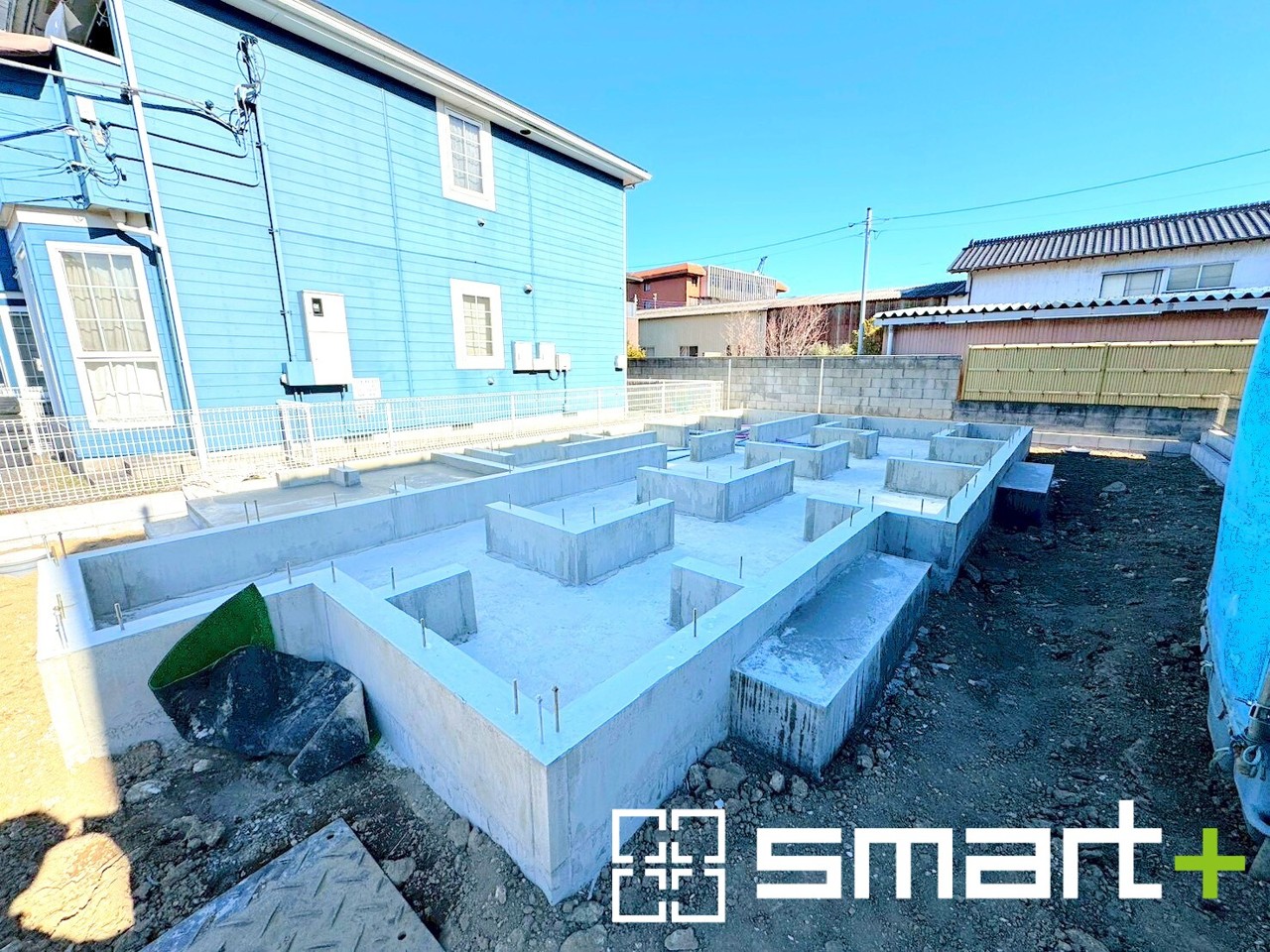 ~ベタ基礎でしっかりとした土台~ ・コンクリートの中に鉄筋を配し強度を高めた「ベタ基礎」を採用。 ・しっかりとした土台を造ったうえで、その上に建物が築造されていきます。