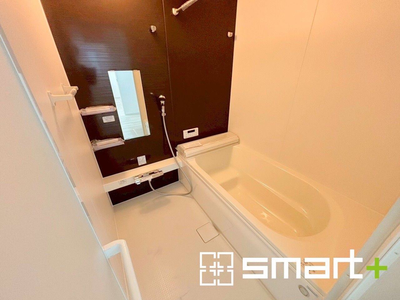 ~浴室乾燥機付きの浴室~ ・浴室には乾燥機が付いているので雨の日でも洗濯物を干すことが可能です。 ・水はけの良い床材など機能面も充実。マイクロバルなどオプションもご相談くださいませ。