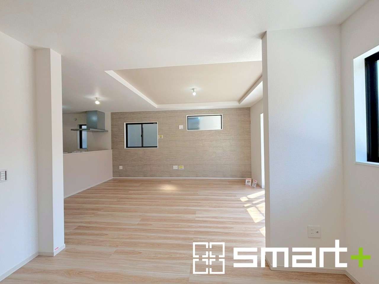 ~折り上げ天井のあるLDK~ ・一部天井を高くする折り上げ天井を配する事で縦への空間が生まれ、開放感のある広々とした仕様に。 ・ぜひ現地でその魅力をご体感くださいませ。