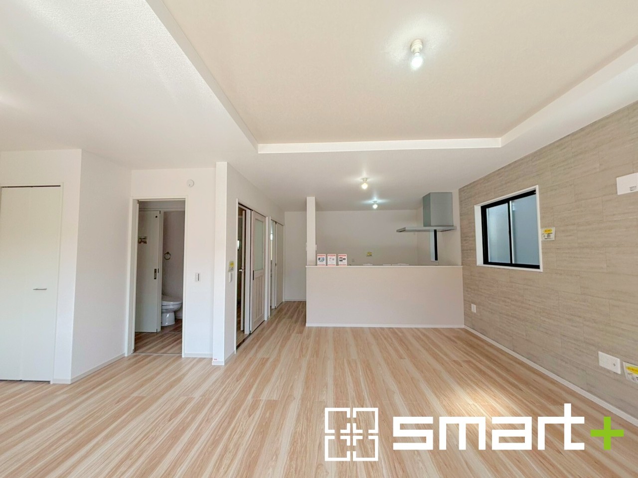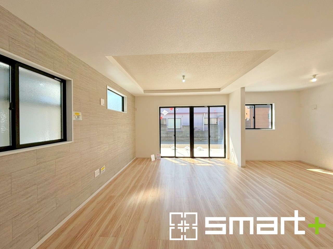 ~穏やかな陽の入るLDK~ ・大きな窓のあるLDKは陽当りも良好で明るい空間となっております。 ・アクセントクロスでシンプルなお部屋もメリハリのある空間になりますね。