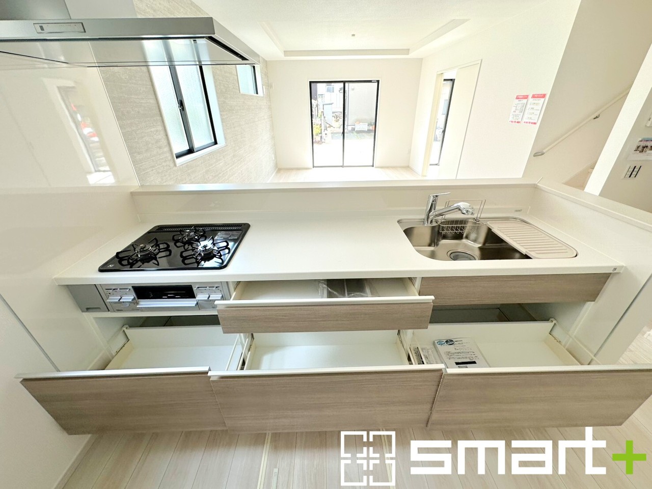 ~使い勝手の良いシステムキッチン~ ・料理がしやすい設計のキッチンでお料理もはかどりますね。 ・もちろんキッチン下部は収納になっておりますので、フライパンなども収納可能です。