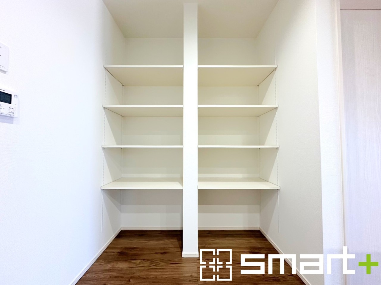 ~便利ないパントリー~ ・キッチン横にはパントリー付。便利な可動棚付きで食材や台所用品のストックもたくさん出来ます。 ・散らかりがちなキッチン周りがスッキリ片付いて家事も快適。