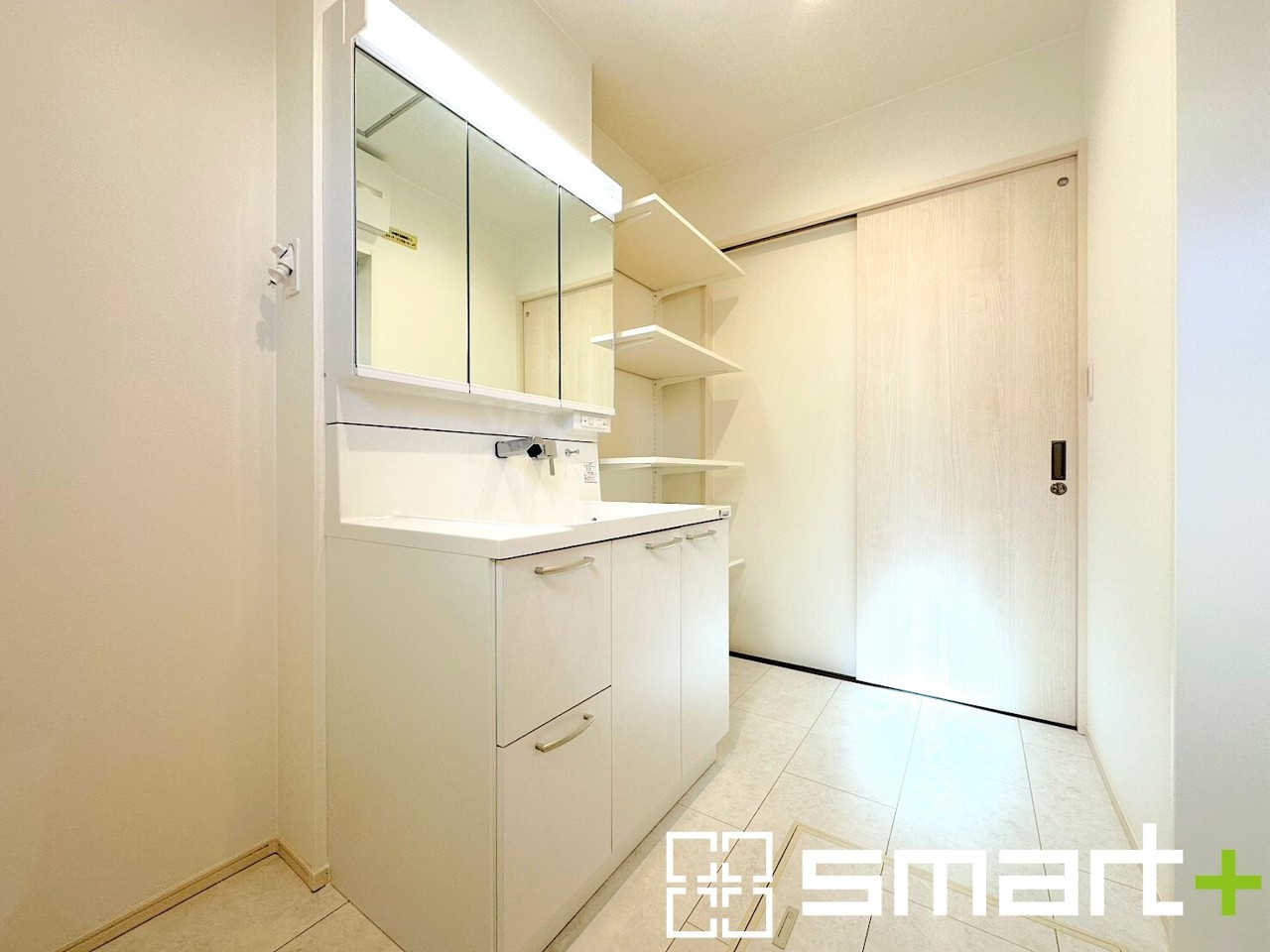 ~人気の三面鏡を採用~ ・洗面台は三面鏡仕様なので鏡の角度を変える事で頭の後ろの方までご確認可能です。 ・鏡の裏が収納になっておりますので、洗面台周りもスッキリと片付きます。