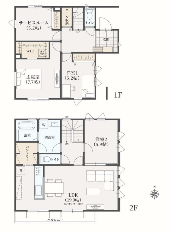 1号棟 ~収納豊富なプランを採用~ ・ウォークインクローゼット、パントリーなど収納豊富なプランを採用。 ・今のお住まいと収納力をぜひ比較してみてください。