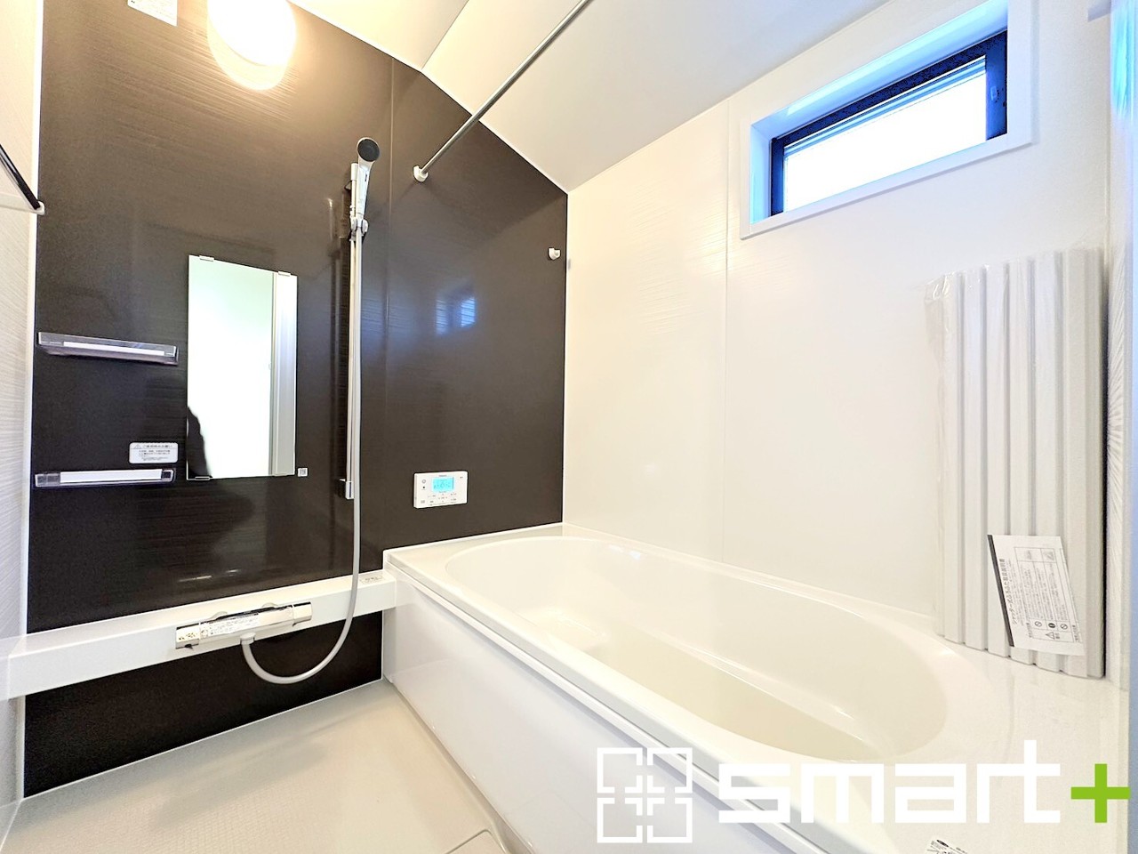 ~浴室乾燥機付きの浴室~ ・浴室には乾燥機が付いているので雨の日でも洗濯物を干すことが可能です。 ・水はけの良い床材など機能面も充実。マイクロバルなどオプションもご相談くださいませ。 (1号棟)