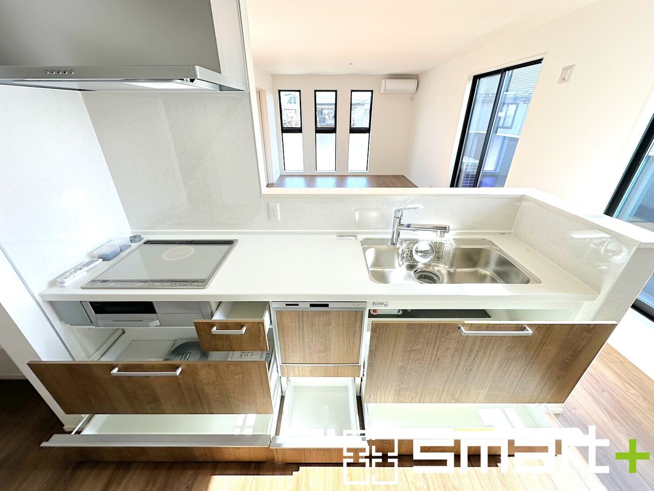 1号棟 ~食器洗浄機を標準装備~ ・キッチンにはビルトインタイプの食器洗浄機を標準装備。 ・家事にかける時間を削減でき、「自分時間」を増やすことができる嬉しいアイテムです。