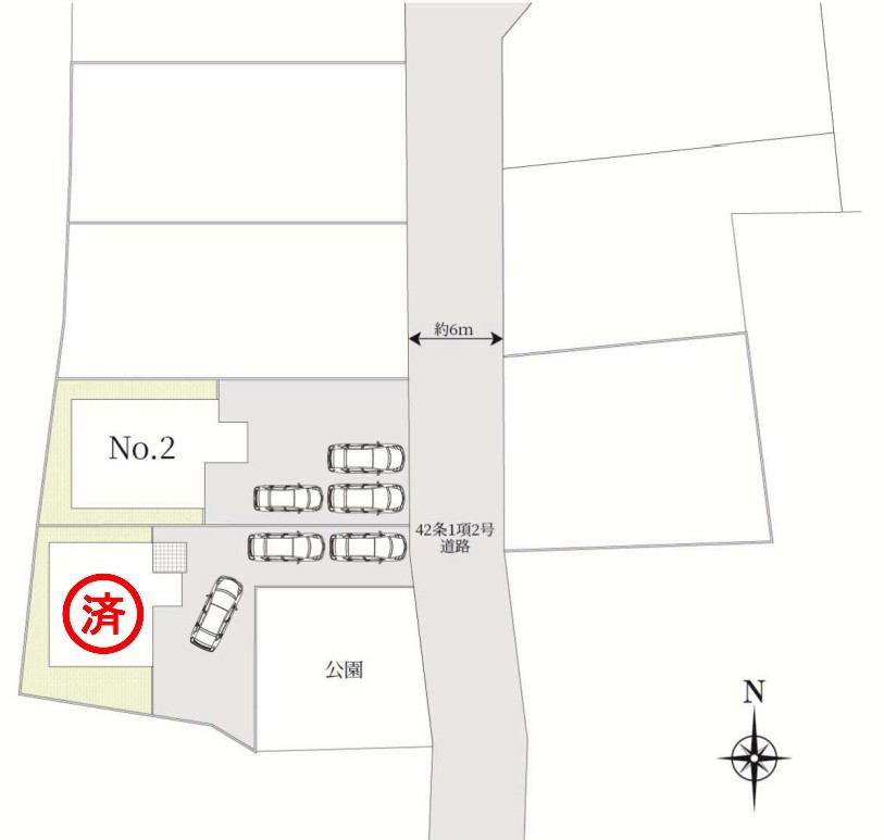 2号棟 ~カースペース2台以上確保~ ・各棟カースペースが2台以上ございますので、車通勤の方にもお勧めのプランとなっております。 ・余裕の敷地で余裕のある新生活をお過ごしいただけます。