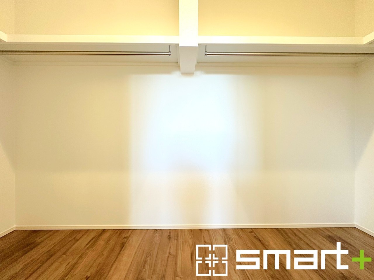 ~ウォークインクローゼット~ ・衣類をハンガーに掛けたまま収納できるウォークインクローゼットは重宝しますね。 ・季節ものや小物類なども整理整頓しやすく生活空間が広がります。 (1号棟)