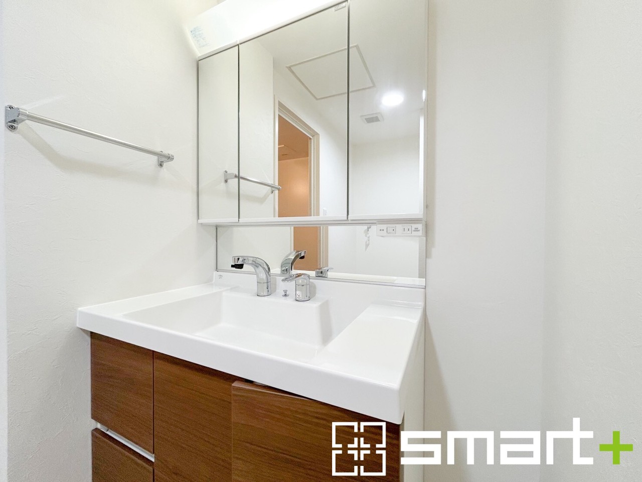 ~人気の三面鏡を採用~ ・洗面台は三面鏡仕様なので鏡の角度を変える事で頭の後ろの方までご確認可能です。 ・鏡の裏が収納になっておりますので、洗面台周りもスッキリと片付きます。