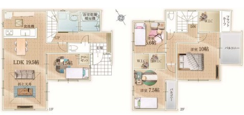 | 間取 | 4LDK (LDK19.5帖、洋室10帖、洋室7.5帖、洋室5.6帖、洋室4.5帖) | ||