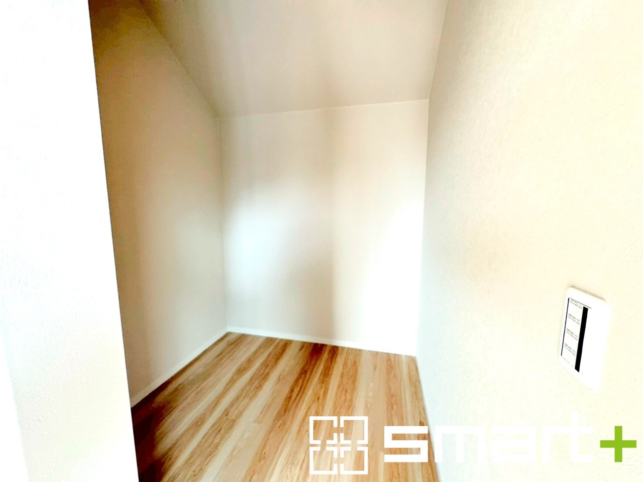 ~憧れのウォークインクローゼット~ ・居室にウォークインを設ける事で季節ものや趣味の用具などもスッキリと収納可能です。 ・ぜひ現地でその便利さをご体感くださいませ。