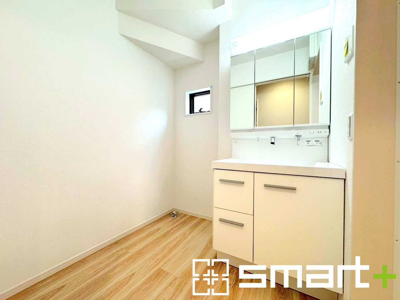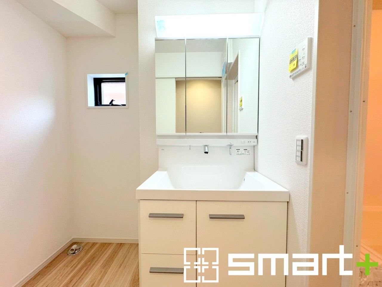 ~人気の三面鏡を採用~ ・洗面台は三面鏡仕様なので鏡の角度を変える事で頭の後ろの方までご確認可能です。 ・鏡の裏が収納になっておりますので、洗面台周りもスッキリと片付きます。