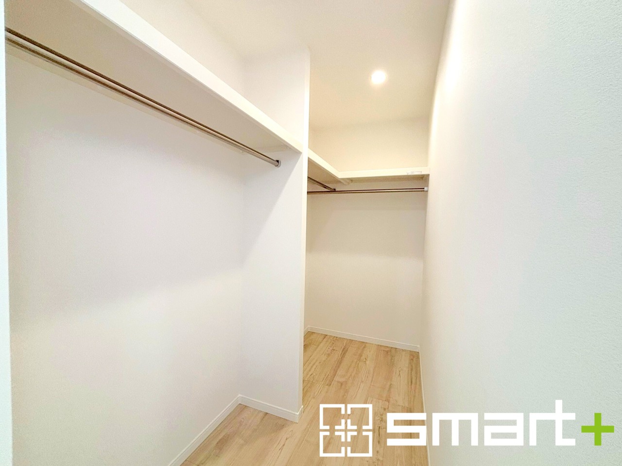 ~本格的な広さのウォークイン~ ・しっかりとした広さのウォークインクローゼットを設けた仕様。 ・よくある小さめのウォークインは実際には収納力弱めですが、これだけ大きいと十分な収納力です。