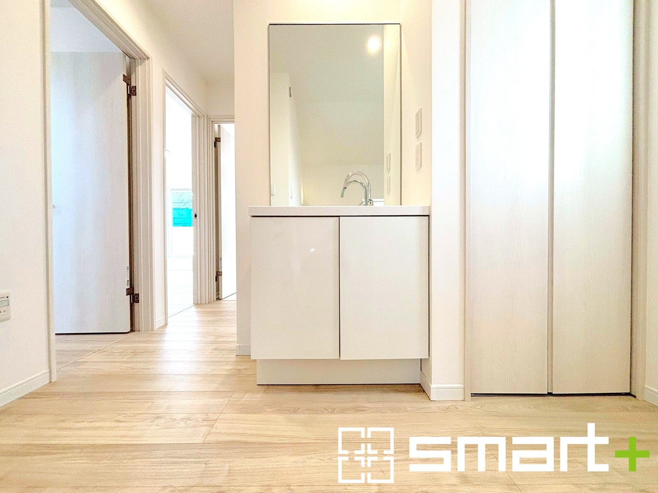 ~人気の三面鏡を採用~ ・洗面台は三面鏡仕様なので鏡の角度を変える事で頭の後ろの方までご確認可能です。 ・鏡の裏が収納になっておりますので、洗面台周りもスッキリと片付きます。