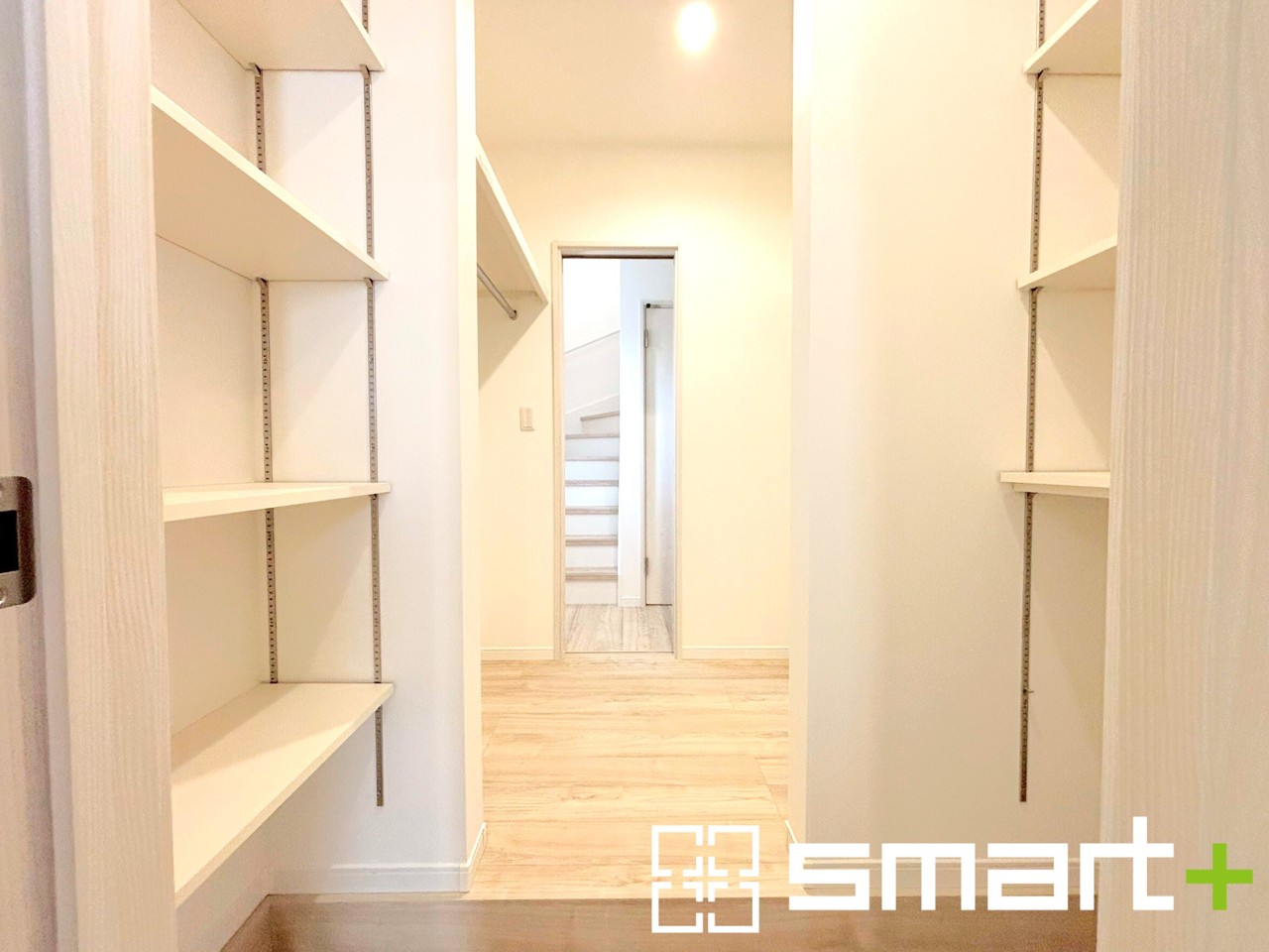 ~パントリーのあるお住まい~ ・キッチン横にパントリー(食糧庫)をご用意。買い溜めした食材などはもちろん、ティッシュなどの置場としてもご利用いただけます。 ・ぜひ現地でご確認くださいませ。