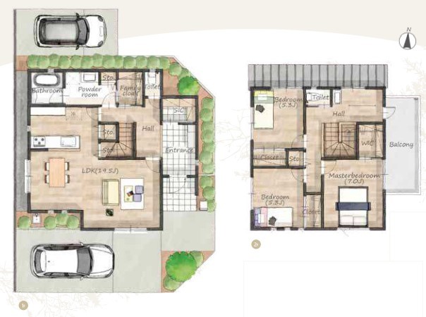 - ※完成予想図はいずれも外構、植栽、外観等実際のものとは多少異なることがあります。