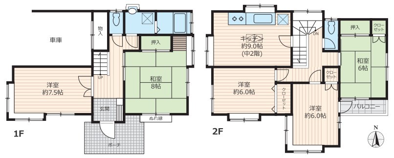 | 間取 | 5DK (DK9帖、洋室7.5帖、和室8帖、洋室6帖、洋室6帖、和室6帖) | ||