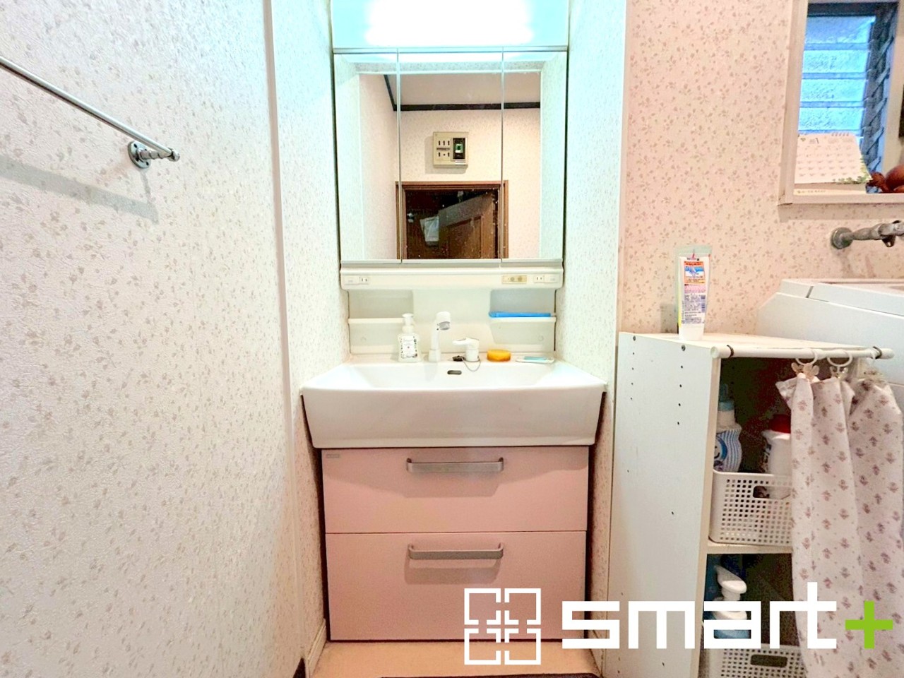 ~人気の三面鏡を採用~ ・洗面台は三面鏡仕様なので鏡の角度を変える事で頭の後ろの方までご確認可能です。 ・鏡の裏が収納になっておりますので、洗面台周りもスッキリと片付きます。