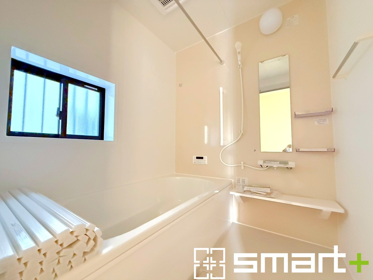 2-L号棟 ~浴室乾燥機付きの浴室~ ・浴室には乾燥機が付いているので雨の日でも洗濯物を干すことが可能です。 ・水はけの良い床材など機能面も充実。マイクロバルなどオプションもご相談くださいませ。 2026/03/22m
