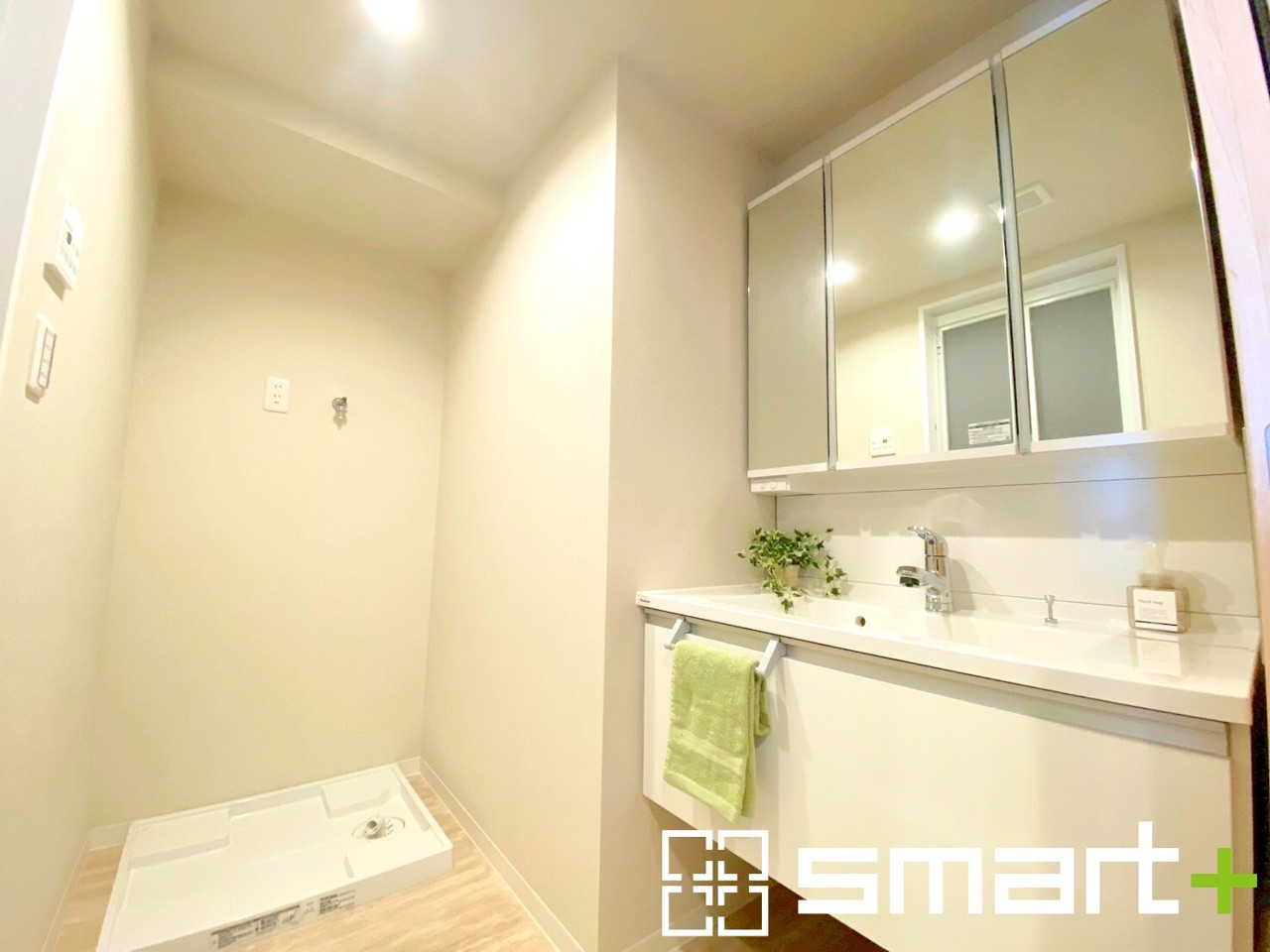 ~人気の三面鏡を採用~ ・洗面台は三面鏡仕様なので鏡の角度を変える事で頭の後ろの方までご確認可能です。 ・室内に洗濯機置き場があるので、外の天候や気温に左右されずに洗濯できますね。