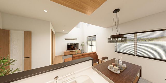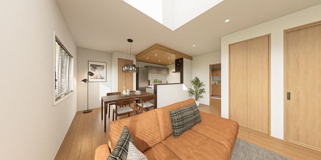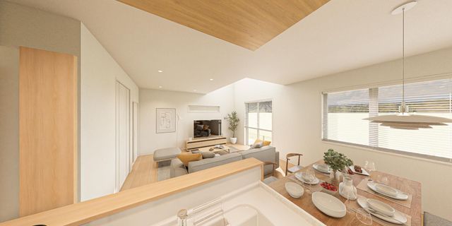 自然素材の質感が調和し、穏やかな時間が流れる住まい(2号棟完成パース)