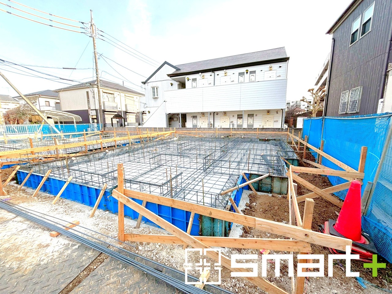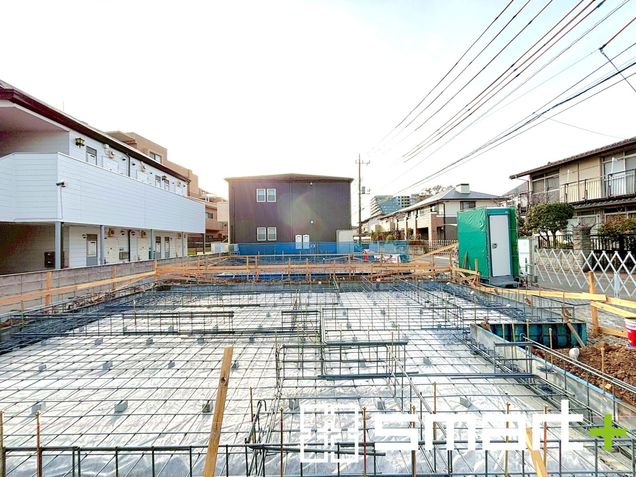 2号棟 ~ベタ基礎でしっかりとした土台~ ・コンクリートの中に鉄筋を配し強度を高めた「ベタ基礎」を採用。 ・しっかりとした土台を造ったうえで、その上に建物が築造されていきます。