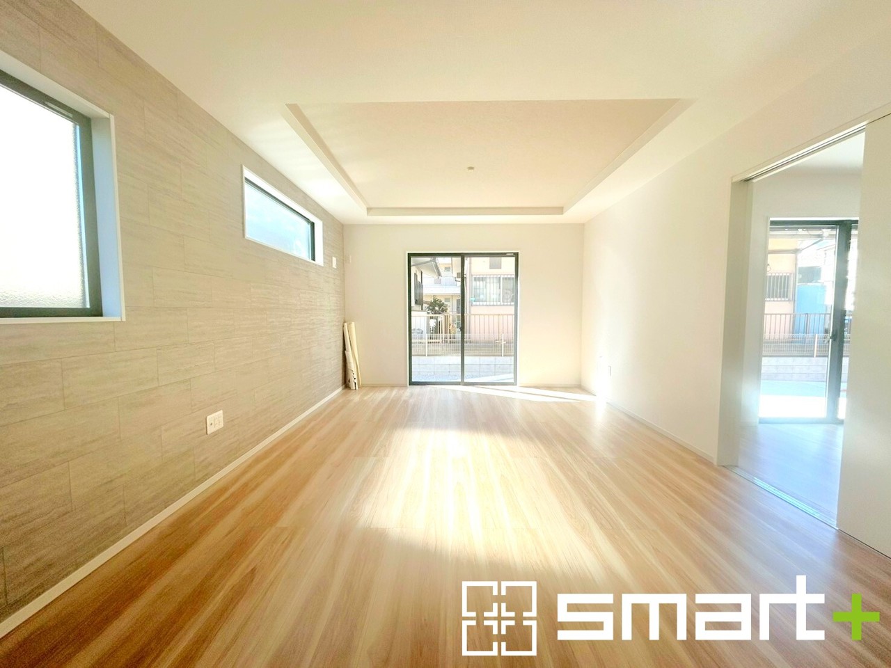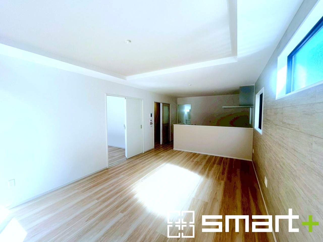 ~折り上げ天井のあるLDK~ ・一部天井を高くする折り上げ天井を配する事で縦への空間が生まれ、開放感のある広々とした仕様に。 ・ぜひ現地でその魅力をご体感くださいませ。