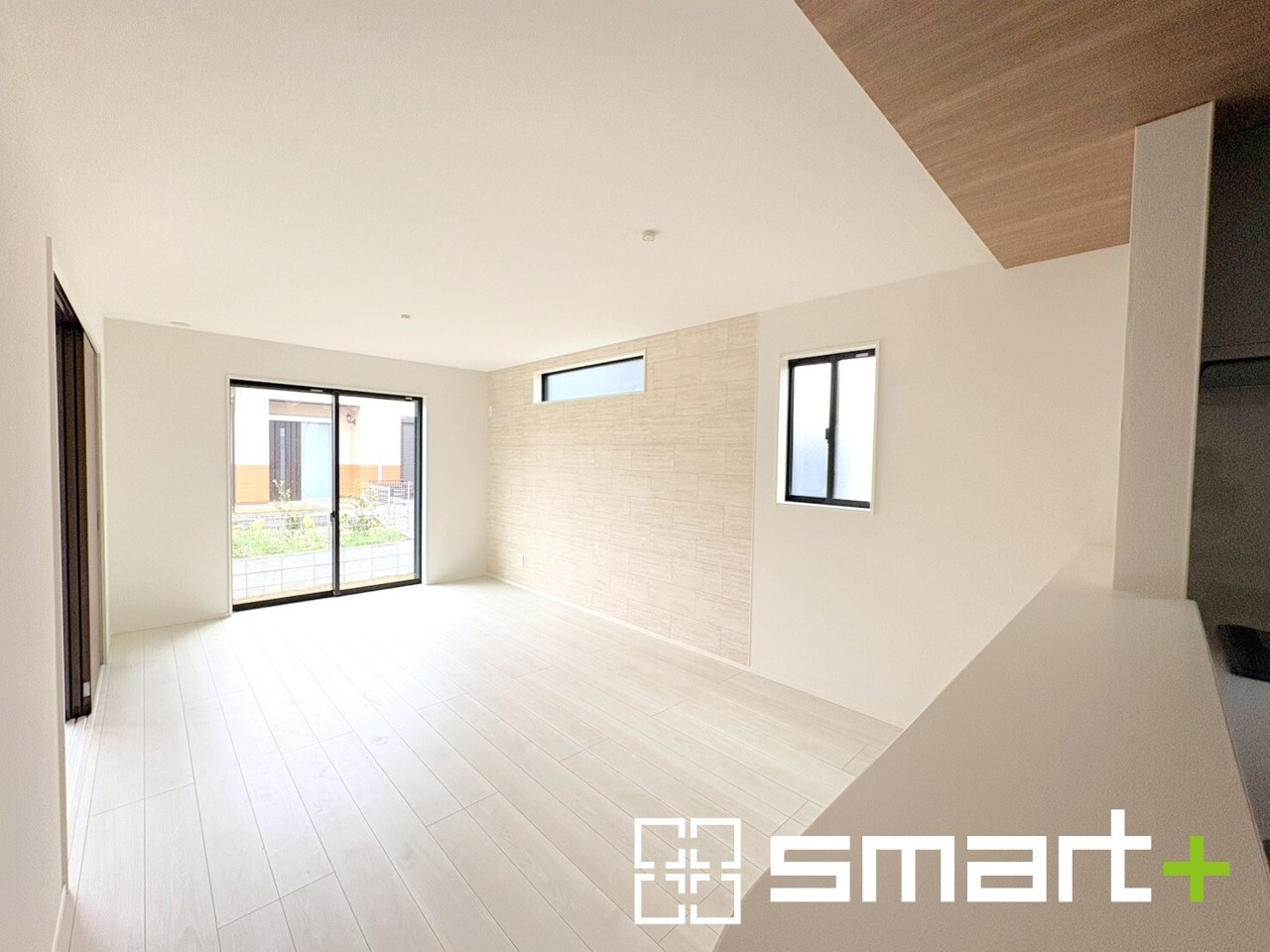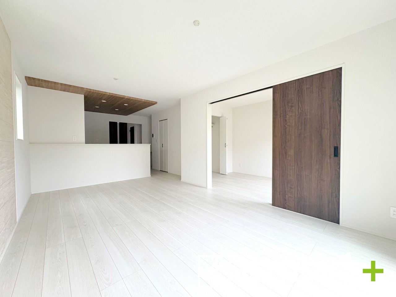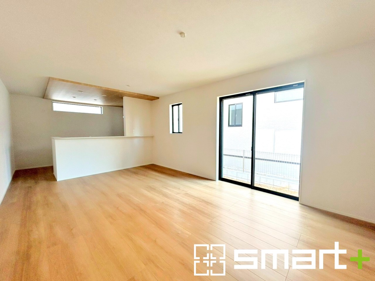 2号棟 ~穏やかな陽の入るLDK~ ・大きな窓のあるLDKは陽当りも良好で明るい空間となっております。 ・ご家族団らんなど過ごす時間の多いLDKが明るいのは嬉しいポイントですね。