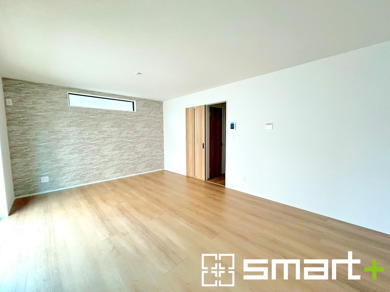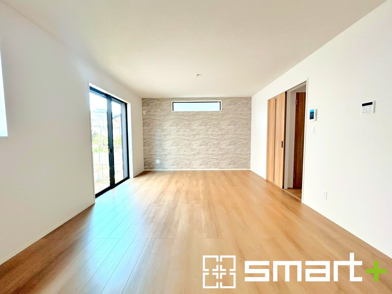 ~家族団らんにピッタリのLDK~ ・柔らかみのあるナチュラルカラーで、家具やカーテンの色も選びやすいですね。 ・アクセントクロスでシンプルなお部屋もメリハリのある空間に。 (2号棟)