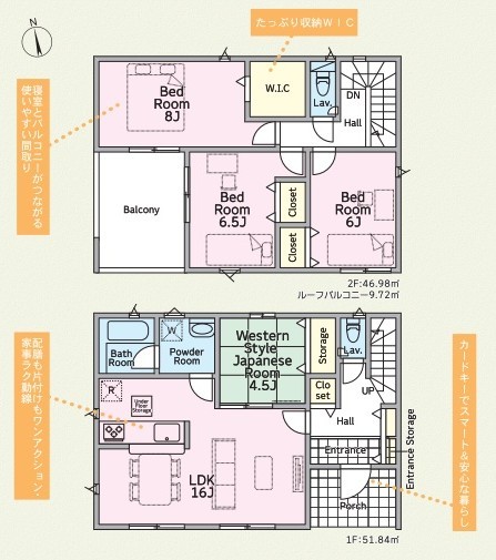 | 間取 | 4LDK + WIC (LDK16帖、洋室8帖、洋室6.5帖、洋室6帖、和室4.5帖) | ||