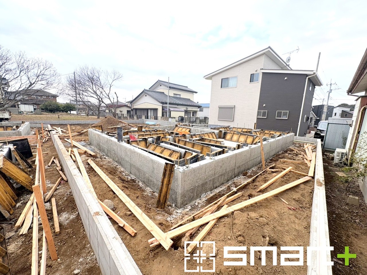 ~ベタ基礎でしっかりとした土台~ ・コンクリートの中に鉄筋を配し強度を高めた「ベタ基礎」を採用。 ・しっかりとした土台を造ったうえで、その上に建物が築造されていきます。