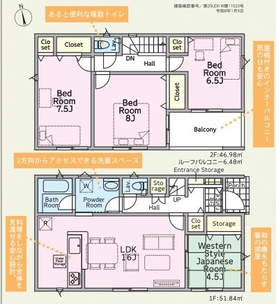 1号棟 ~維持管理対策も取られております~ ・住宅性能評価において「維持管理対策等級3」を取得。 ・各点検口などが配置され、住宅のメンテナンスがしやすい造りとなっております。