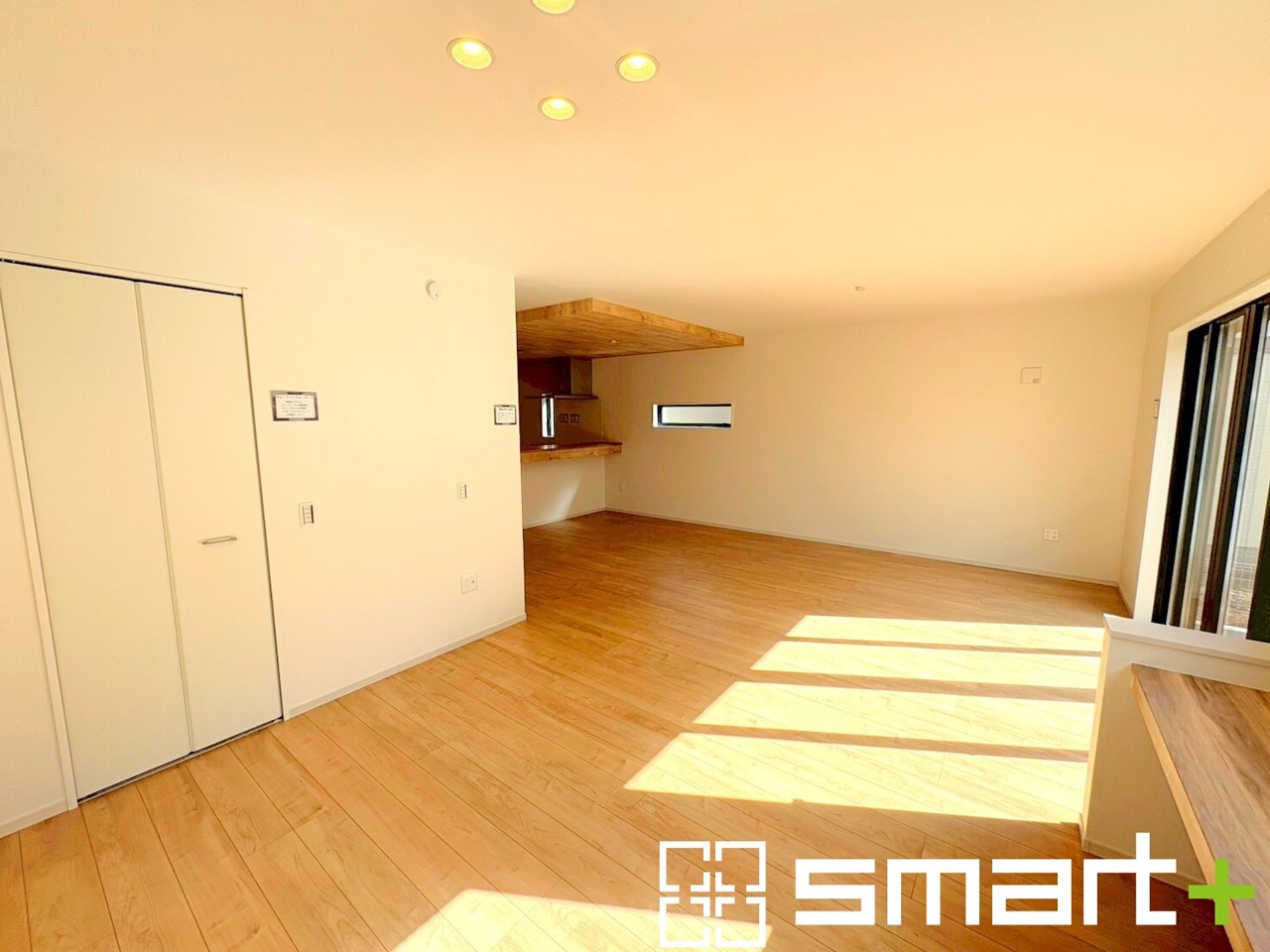 2号棟 ~穏やかな陽の入るLDK~ ・大きな窓のあるLDKは陽当りも良好で明るい空間となっております。 ・足元ポカポカ床暖房付きのリビングで寛ぎのひと時をお過ごしいただけます。