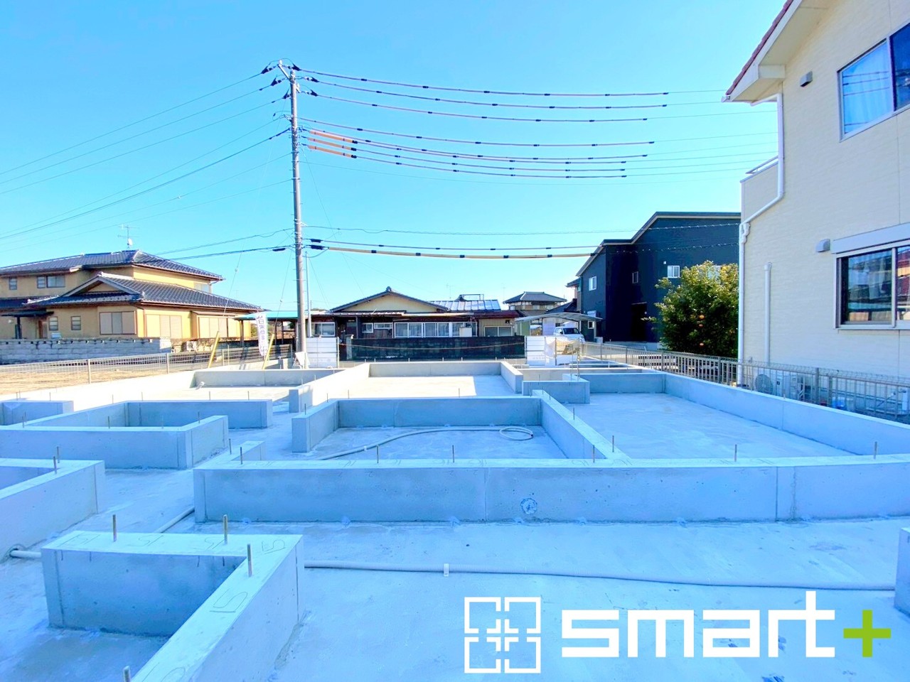 ~ベタ基礎でしっかりとした土台~ ・コンクリートの中に鉄筋を配し強度を高めた「ベタ基礎」を採用。 ・しっかりとした土台を造ったうえで、その上に建物が築造されていきます。 (1号棟)